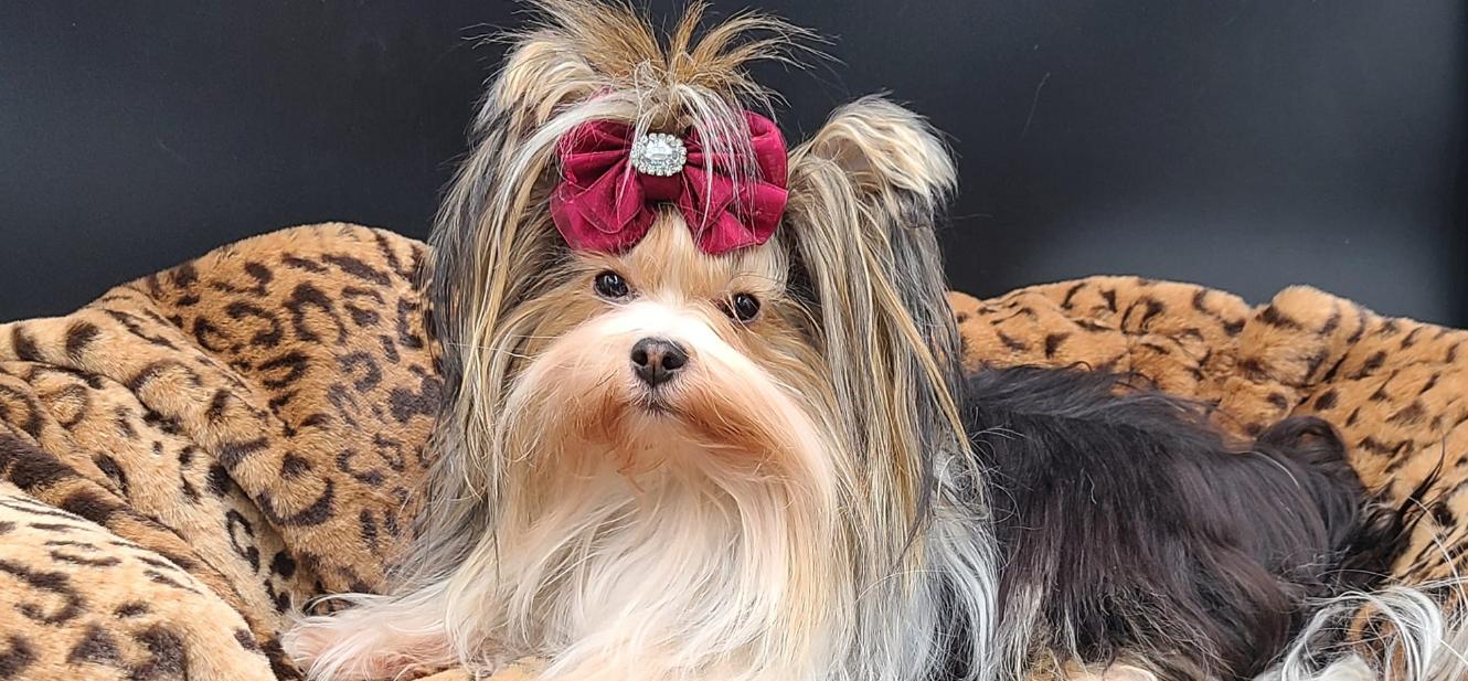 Imzadi is a female Yorkshire Terrier. Carefully selected as a great representative of her breed, Mae decided to make her part of their program. Mae has passed Good Dog’s screening process, which involved a review of their breeding practices, environment, and the mental and physical health of their dogs.