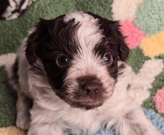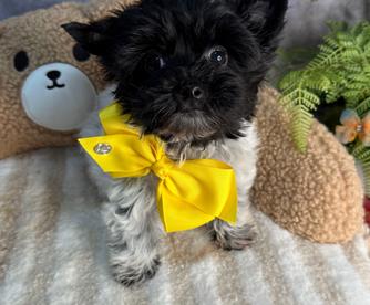 Our Biewer Terrier puppies are black tan and white. Maltipoo puppies include apricot, cafe au lait, and red. Yorkshire Terrier puppies include blue and gold and black and tan. Maltese puppies are white. Colors will vary depending on the parent dogs.