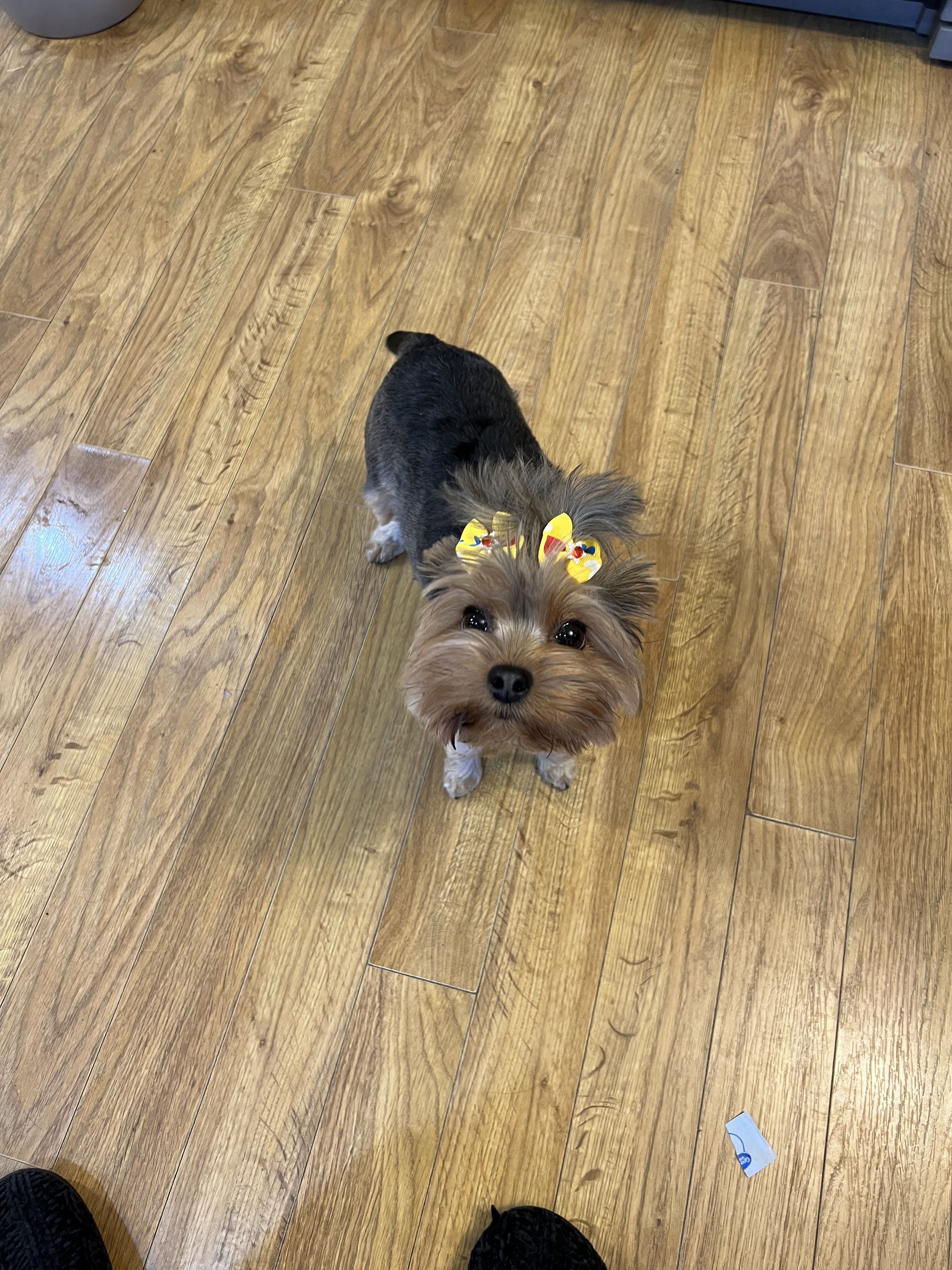 She’s blue and gold yorkie very playful sentimental and very loving. Joelyn is full of energy and spark. She’s very curious about everything and loves to be a cuddled bug