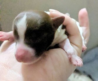 Dark chocolate parti girl. Mom is kb parti, dad is regular chocolate