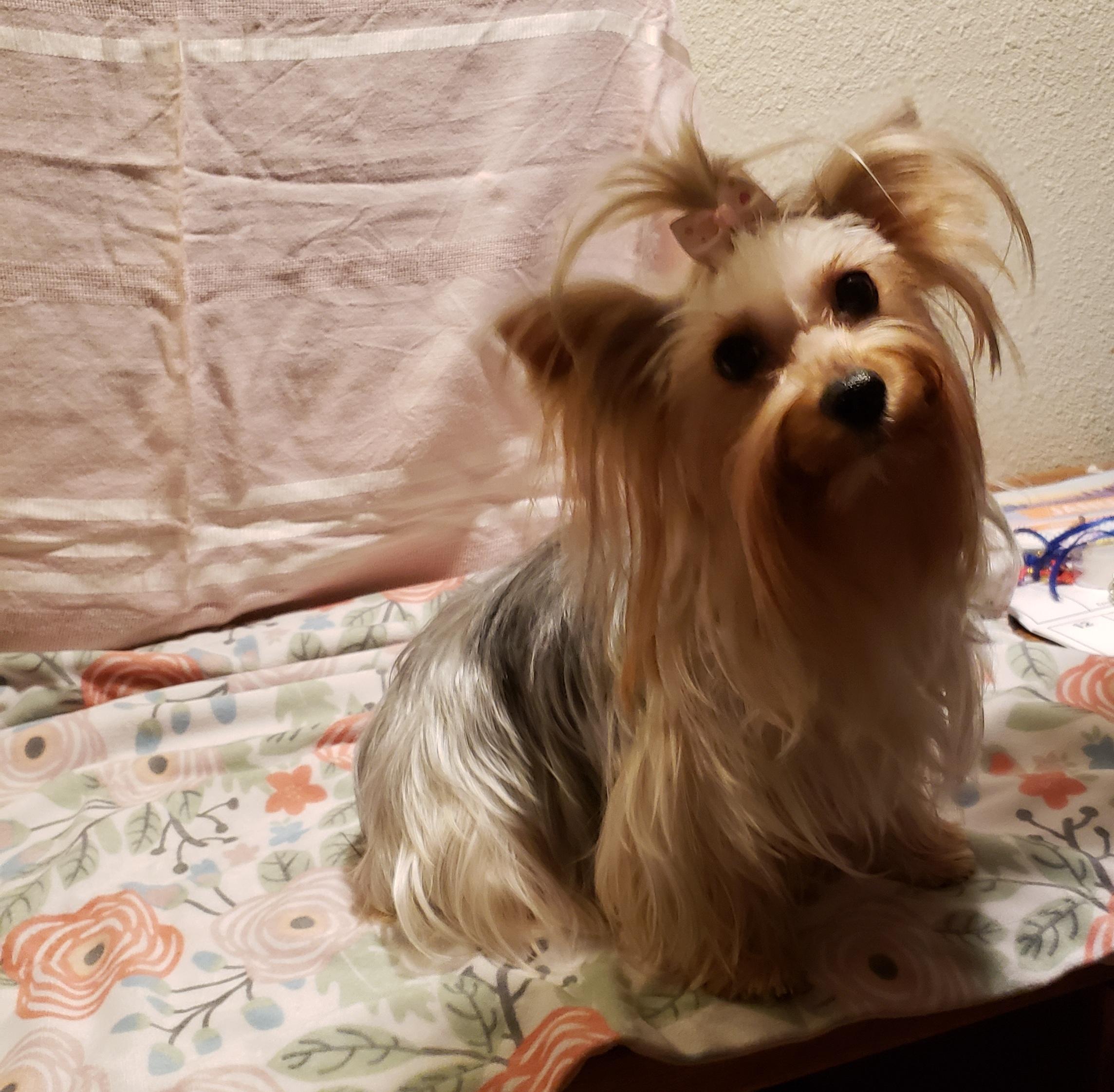 Pine is a female Yorkshire Terrier. Carefully selected as a great representative of her breed, Marilyn decided to make her part of their program. Marilyn has passed Good Dog’s screening process, which involved a review of their breeding practices, environment, and the mental and physical health of their dogs.