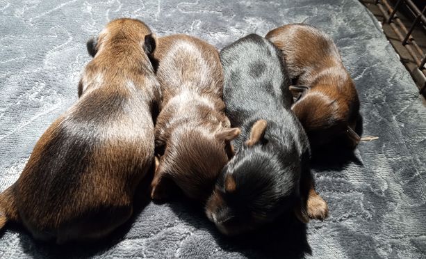 Our puppies include chocolate and tan, black and tan, and tan. Colors will vary depending on the parent dogs.