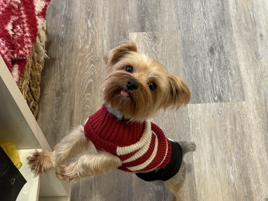 Onyx is such a traditional black and tan Yorkie and such a fun, and playful little fella! He’s all of about 5 pounds soaking wet! He’s adventurous and loving and will let you know what he wants but will do it in the cutest way! He’s a simple guy, and is so easy going, especially with the Bossy Diva of the house!