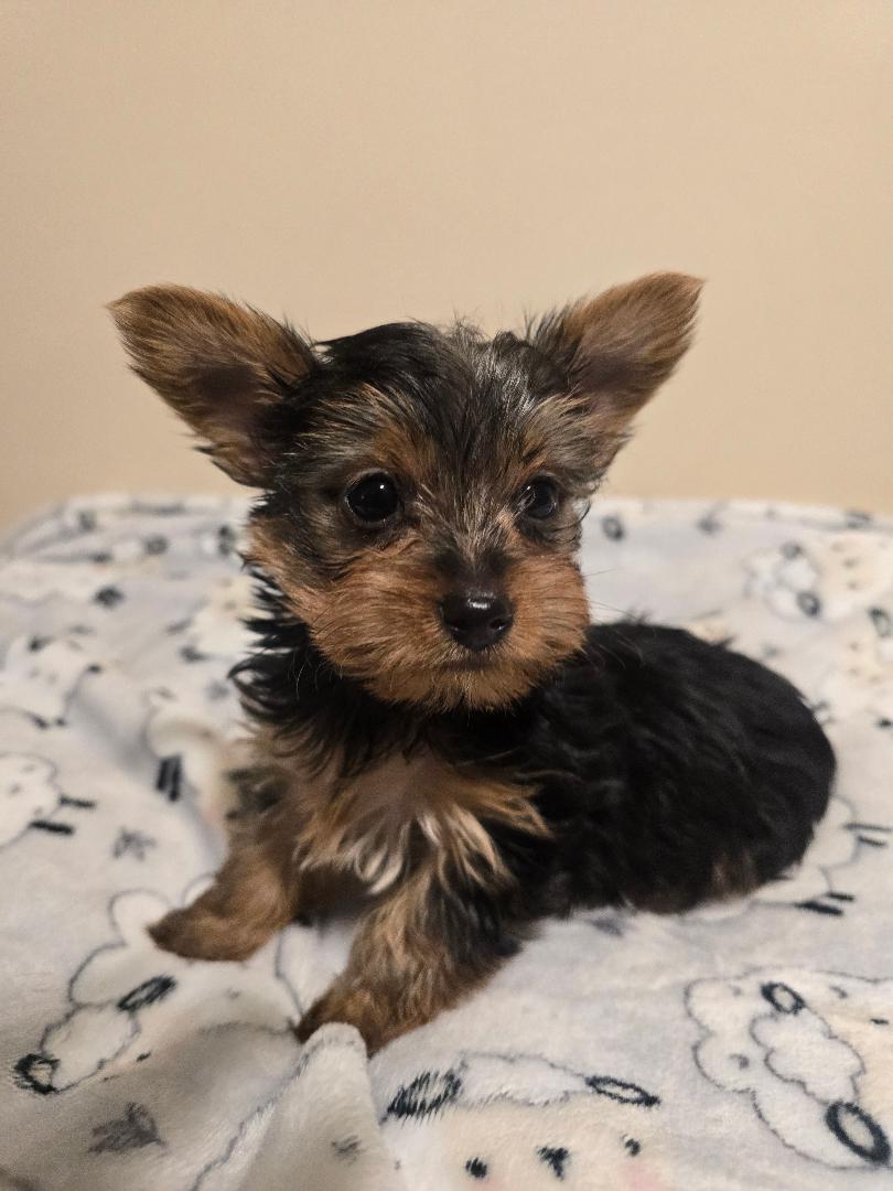Anya is very happy-go-lucky and willing to please. Loves to be with her human family but always ready to play with a Yorkie family member. Quiet, peaceful disposition.