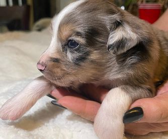 Our puppies include blue merle and red merle. Colors will vary depending on the parent dogs.