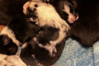 Our puppies include black & white, blue merle, black tri-color, and red tri-color. Colors will vary depending on the parent dogs.