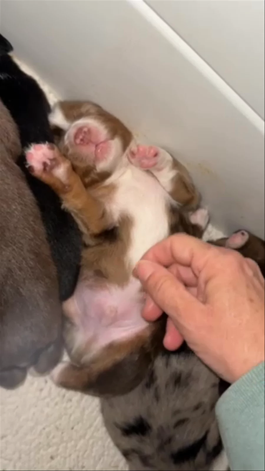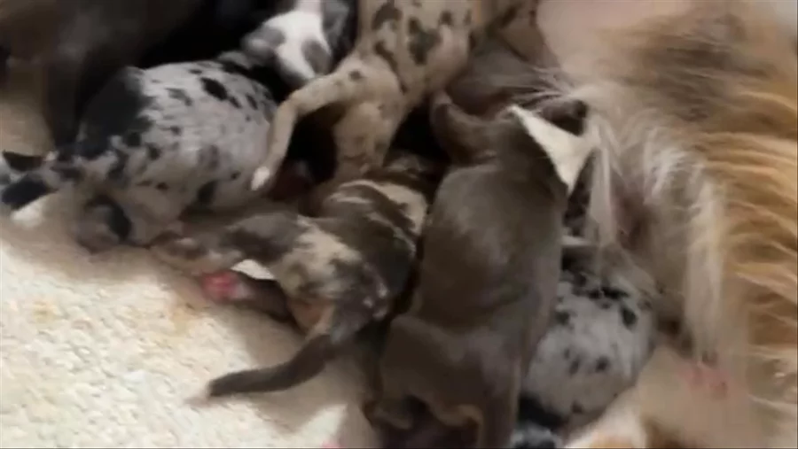 Welcome to Maia x Bay's first litter! She is exhausted after whelping, she earned her nap.