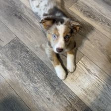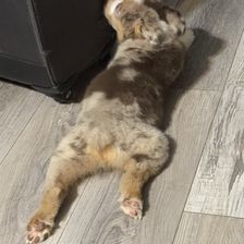 Kash is a beautiful red merle boy with striking blue eyes. He’s laid-back, gentle, and very people-oriented. Kash enjoys playtime but also loves snuggling up after a long day of fun.
