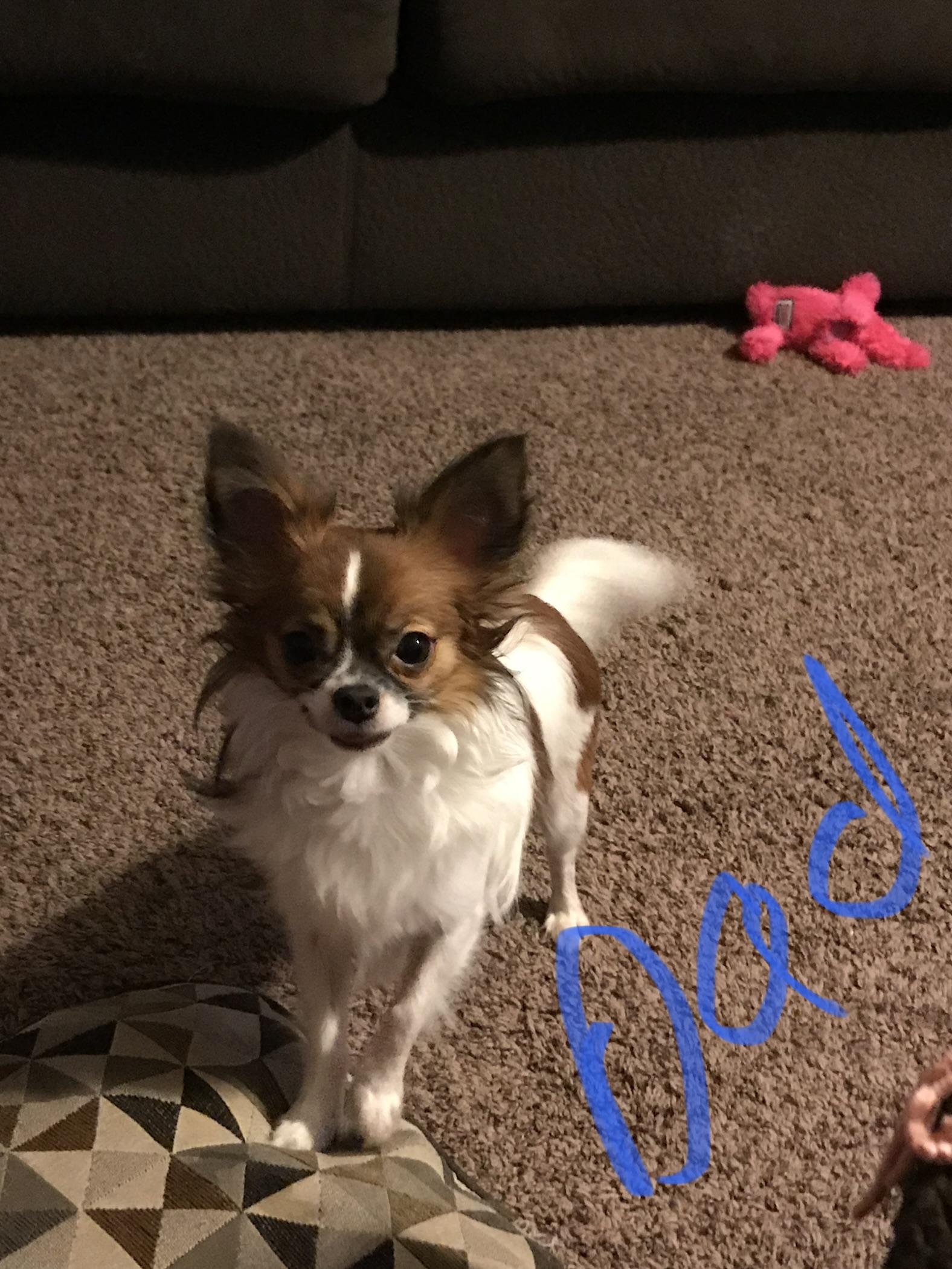 Phoenix is a male Chihuahua. Carefully selected as a great representative of his breed, Lonnie decided to make him part of their program. Lonnie has passed Good Dog’s screening process, which involved a review of their breeding practices, environment, and the mental and physical health of their dogs.