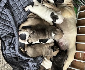 Our puppies include cream, fawn, white and brindle, and brindle and white. Colors will vary depending on the parent dogs.