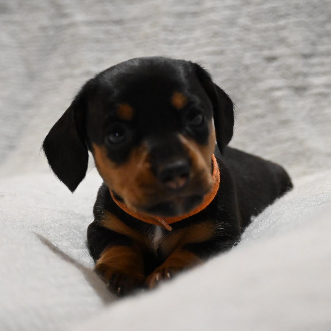Cocoa Pebbles McKinnon is a female Dachshund. Carefully selected as a great representative of her breed, Kimmey decided to make her part of their program. Kimmey has passed Good Dog’s screening process, which involved a review of their breeding practices, environment, and the mental and physical health of their dogs.