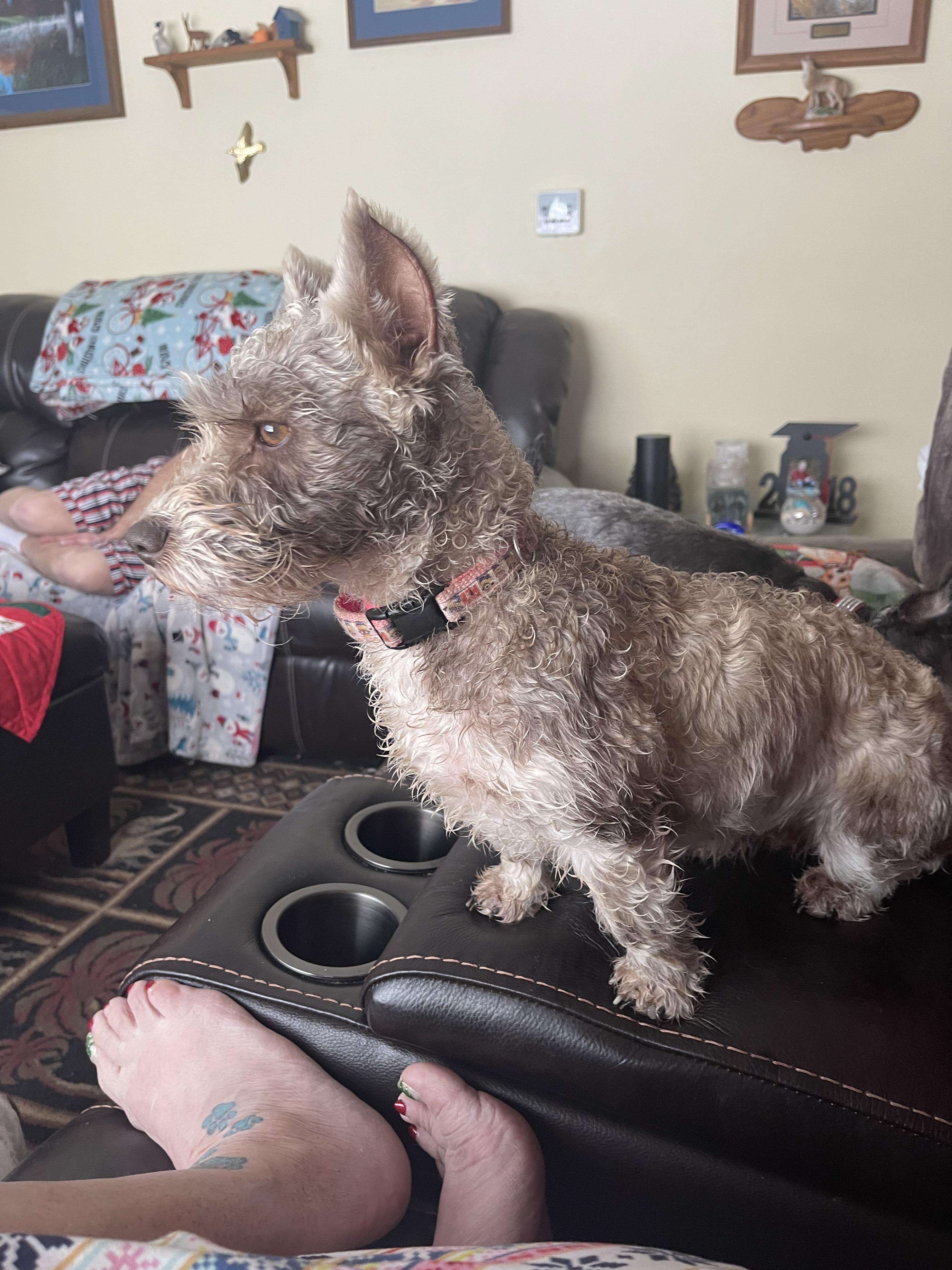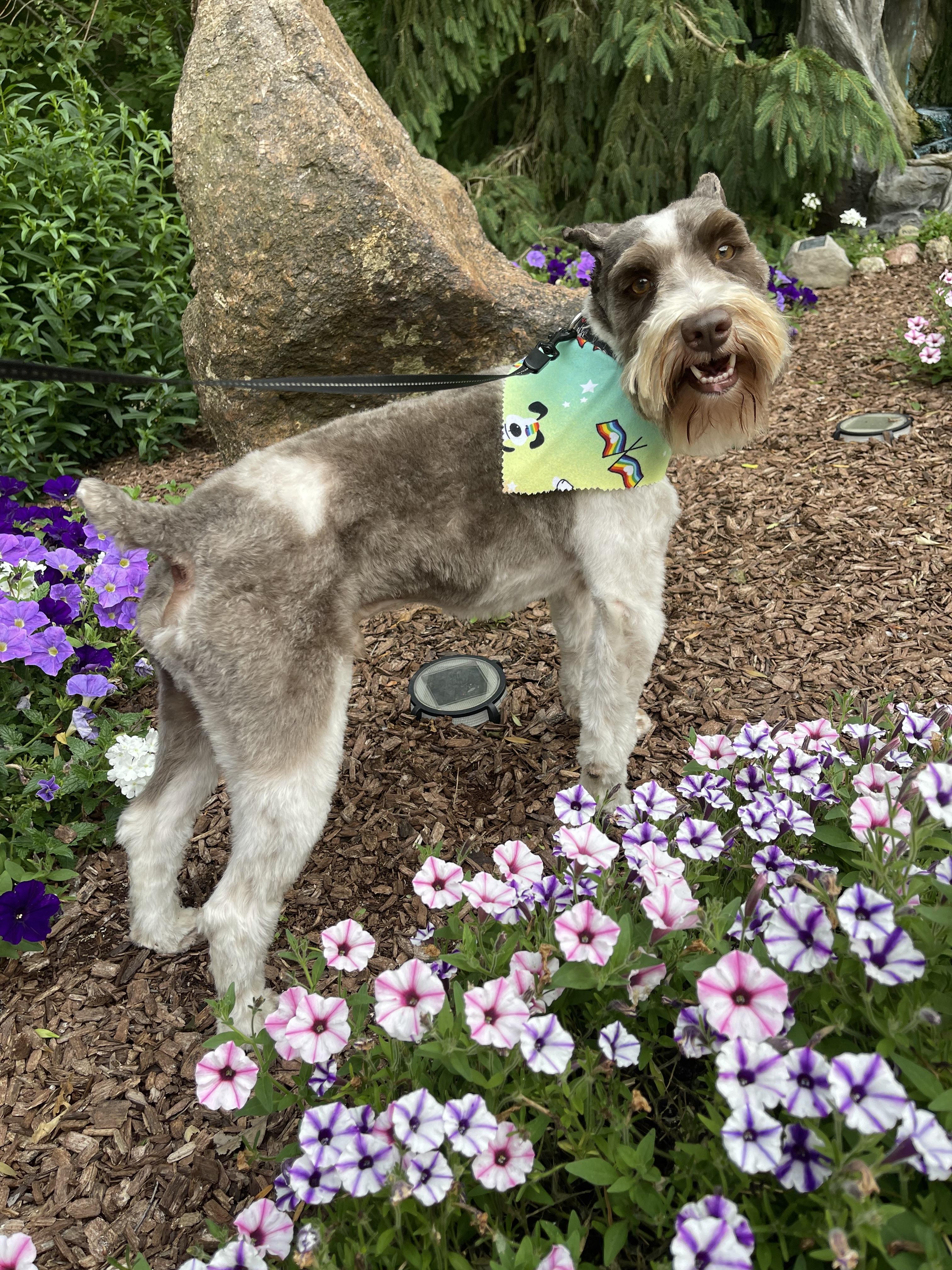 Simbie is a male Miniature Schnauzer. Carefully selected as a great representative of his breed, Brenda decided to make him part of their program. Brenda has passed Good Dog’s screening process, which involved a review of their breeding practices, environment, and the mental and physical health of their dogs.