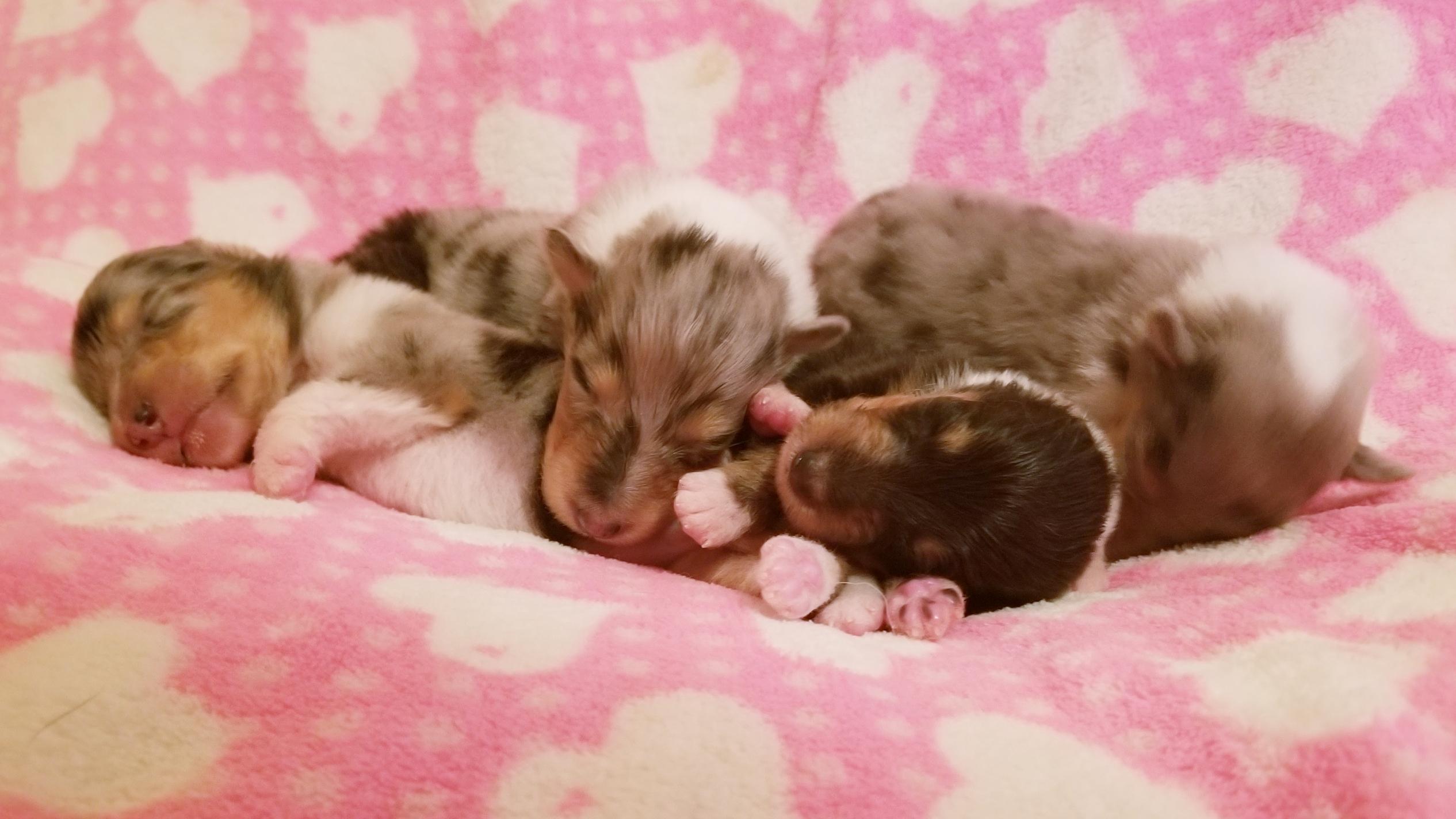 Collie puppies are blue merle. Colors will vary depending on the parent dogs.