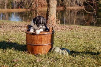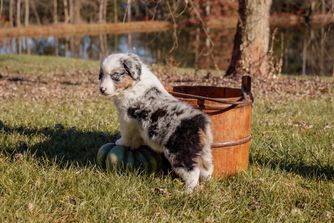 Our puppies include black & white, red & white, black, red merle, blue merle, black tri-color, and red tri-color. Colors will vary depending on the parent dogs.
