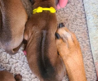I was given such a great opportunity not only to help with the puppies but to see the amount of care, nurturing and love was given to each and every pup! The amount of things that we buyers don’t see that she did for them was incredible! 10 pups that went home wanting clean crates happens because of the amount of effort that Robin worked so very hard for. Loved watching them grow and getting to know all the Rhodesian relatives was amazing! Boaz, (aka Turbo) our pup is doing great and is loving, kind and gentle and so far been healthy and so trainable. This will be our 4th ridgeback and we are so in love with this breed! It’s always good to know there is a breeder who not only cares but was very transparent and including the new owners via live cams so you can get to know your pup even from a distance. We will miss being in such close proximity to his relatives!