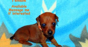 I have been breeding Miniature Pinscher for 28 years. I love the breed, they're funny, energetic, lovable and very active dogs. Our puppies are raised in our home by myself and my husband. Purchasing one of our puppies includes first vaccine, deworming, AKC Limited Registration certificate, puppy food, puppy toy, puppy blanket. Puppy will be microchiped before going to its new home. You will get a copy of vet records for your vet to see what has been done. I do not do ear cropping. Puppy owners will be signing a contract agreeing to spay/ neuter when the puppy is old enough. I will not sell to those that want to breed.