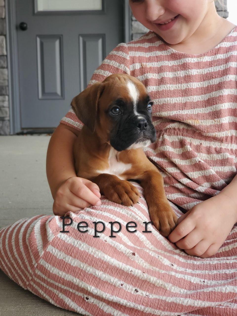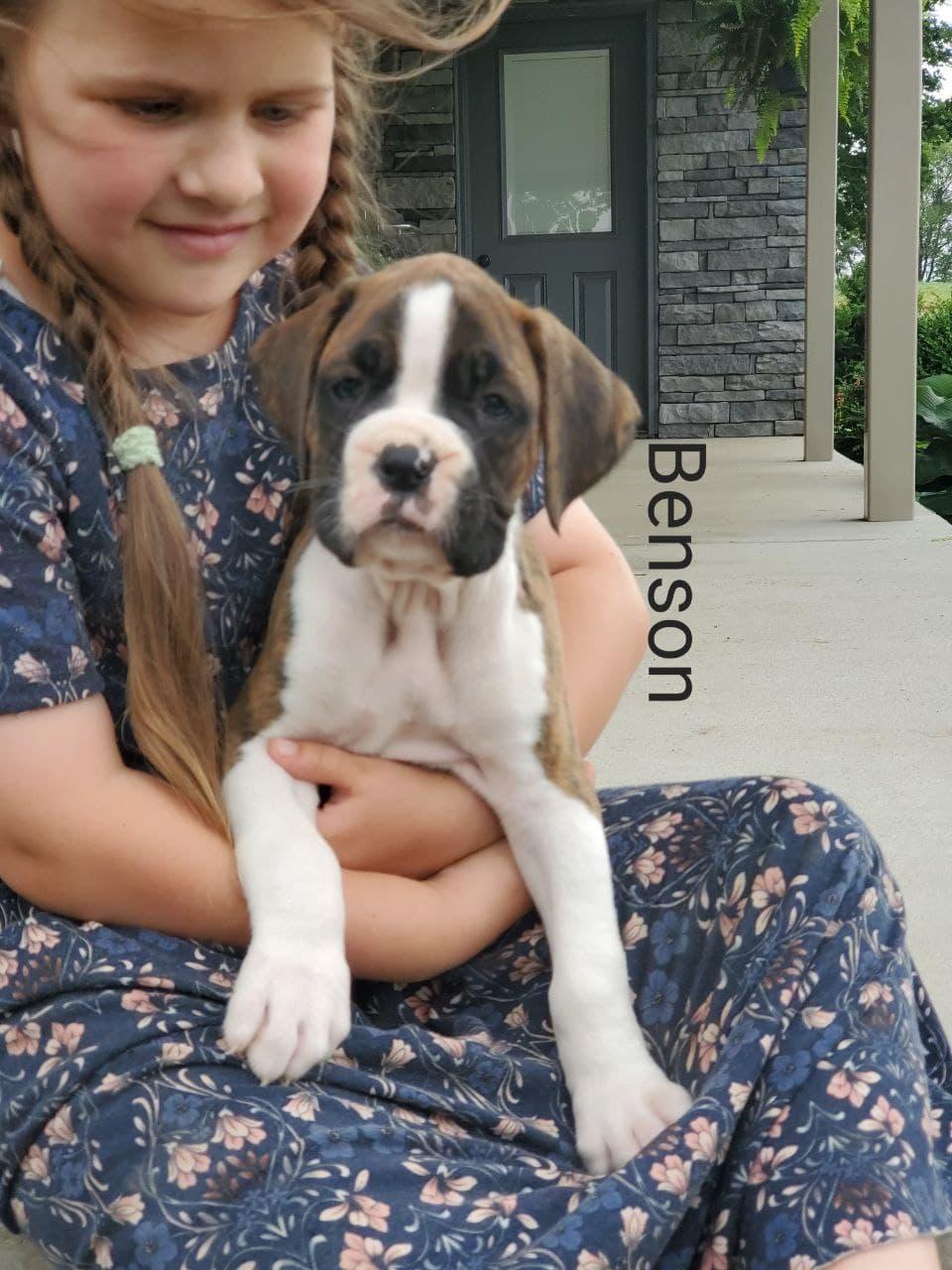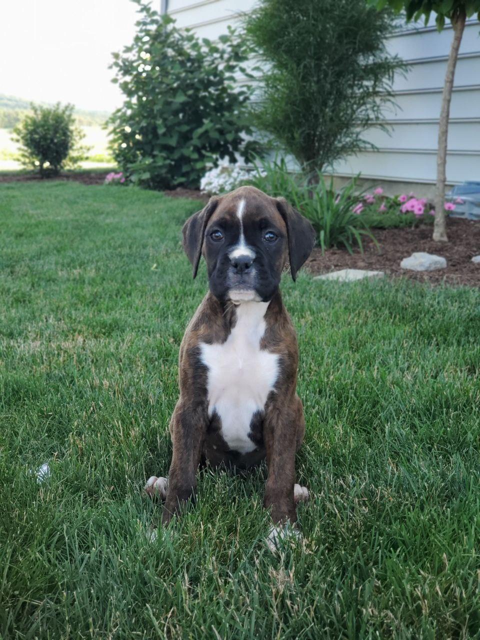 Zoey is a female Boxer. Carefully selected as a great representative of her breed, Linford decided to make her part of their program. Linford has passed Good Dog’s screening process, which involved a review of their breeding practices, environment, and the mental and physical health of their dogs.