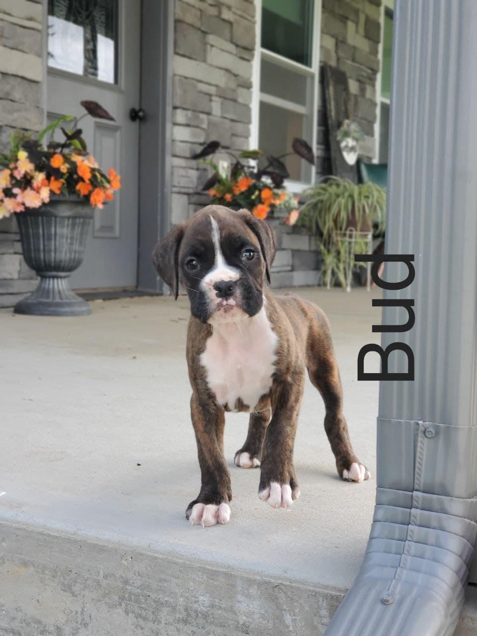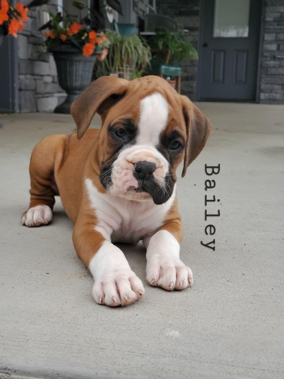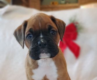 Our puppies include fawn, brindle, and white. Colors will vary depending on the parent dogs.