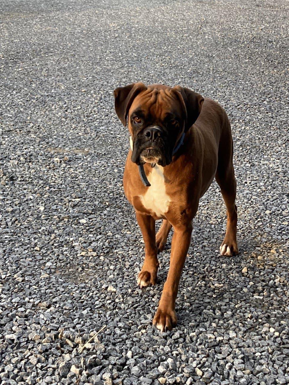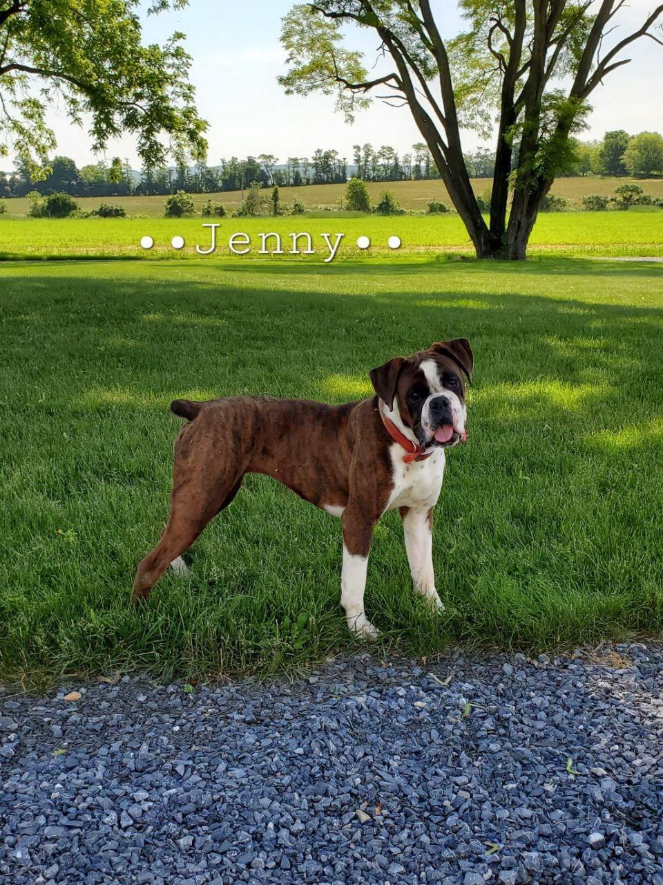 Jenny is a female Boxer. Carefully selected as a great representative of her breed, Linford decided to make her part of their program. Linford has passed Good Dog’s screening process, which involved a review of their breeding practices, environment, and the mental and physical health of their dogs.