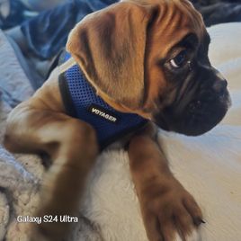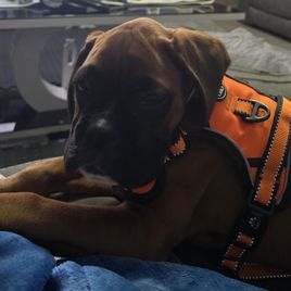 Mya is a female Boxer. Carefully selected as a great representative of her breed, Linford decided to make her part of their program. Linford has passed Good Dog’s screening process, which involved a review of their breeding practices, environment, and the mental and physical health of their dogs.