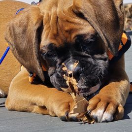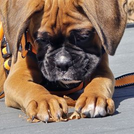 Barbie is a female Boxer. Carefully selected as a great representative of her breed, Linford decided to make her part of their program. Linford has passed Good Dog’s screening process, which involved a review of their breeding practices, environment, and the mental and physical health of their dogs.