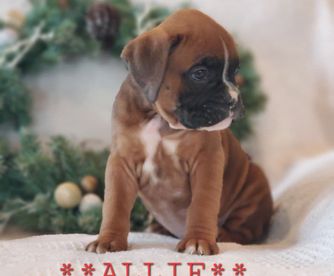 Allie is a female Boxer. Carefully selected as a great representative of her breed, Linford decided to make her part of their program. Linford has passed Good Dog’s screening process, which involved a review of their breeding practices, environment, and the mental and physical health of their dogs.