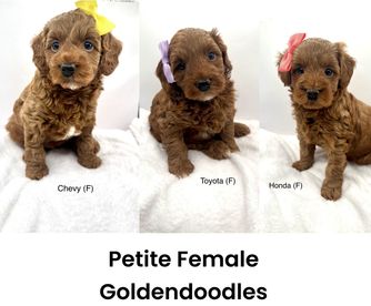 Our Bernedoodle puppies are standard size. Goldendoodle puppies include petite, miniature, and medium sizes. Sizes will vary depending on the parent dogs.