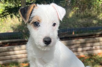 Our Parson Russell Terrier puppies include white and tri-colored. Australian Shepherd puppies include red merle, blue merle, black tri-color, and red tri-color. Colors will vary depending on the parent dogs.