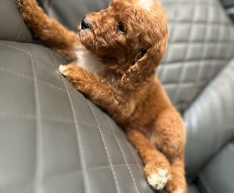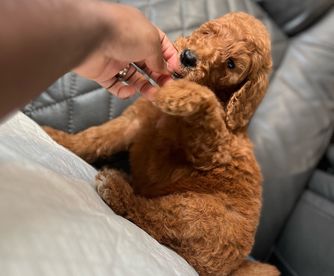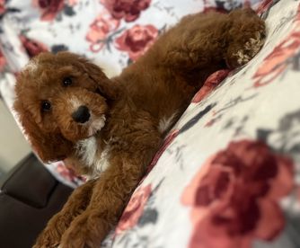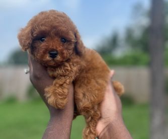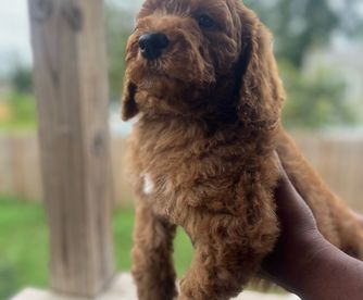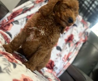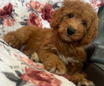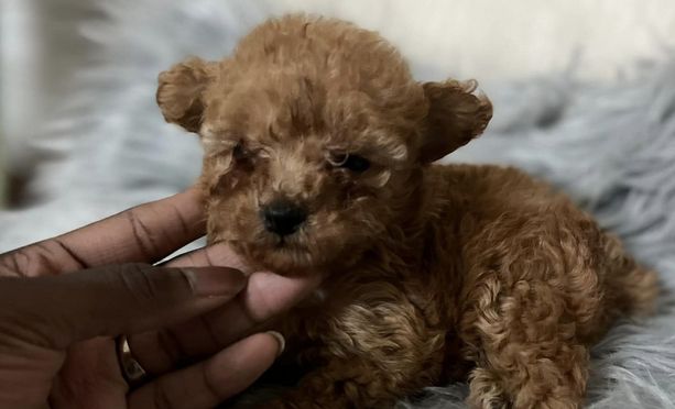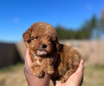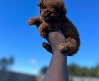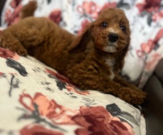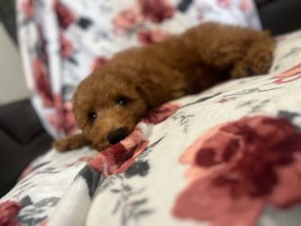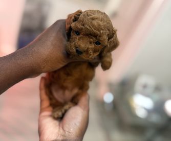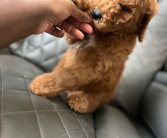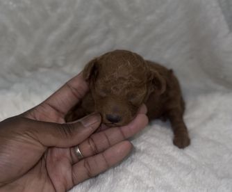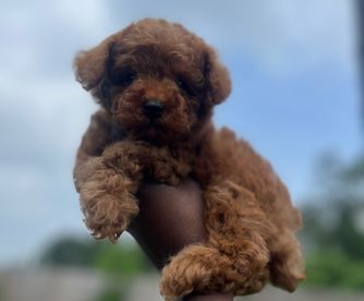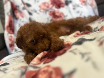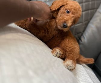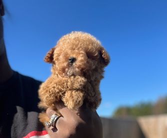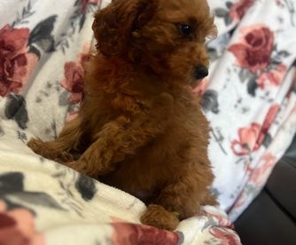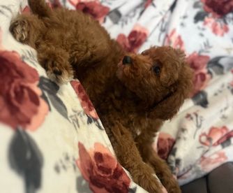 Roxie is a red toy poodle. She has a very loving temperament and loves attention. She is 5 pounds. CKC Registered pending embark results .