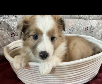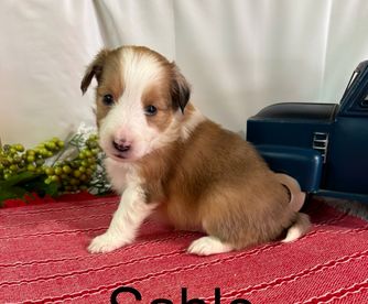 Our puppies include blue merle and white, black and tan, white and sable merle, and sable and white. Colors will vary depending on the parent dogs.