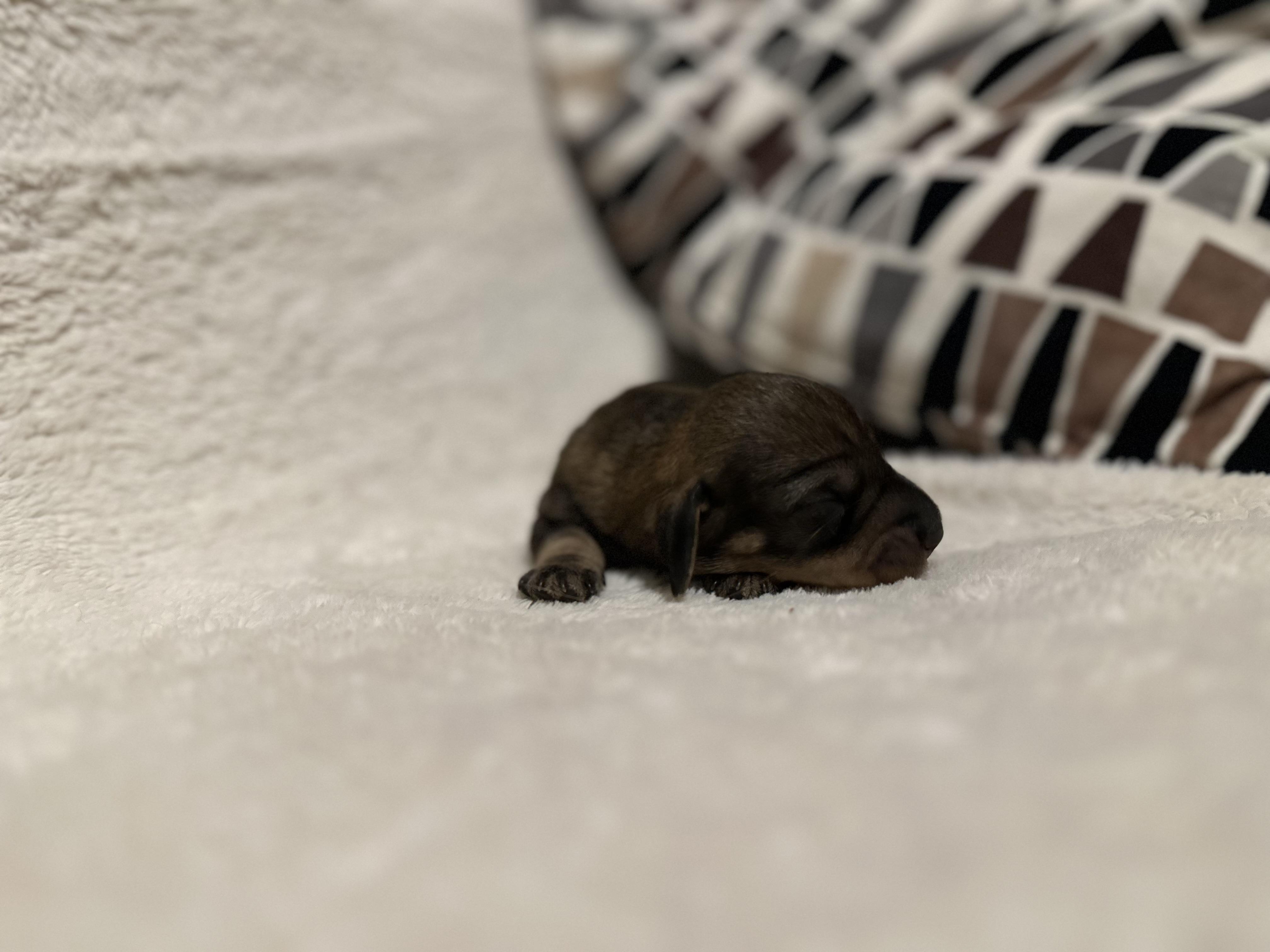 I had an exceptional experience working with Christina to bring home my first wirehaired dachshund. From the start, her communication was excellent, and she played a crucial role in helping me choose the perfect puppy for my home. Christina's knowledge about the breed was evident as she provided valuable information, making the transition to owning a wirehaired dachshund seamless. Not only did she offer insights into their characteristics, but she also went the extra mile by recommending a skilled groomer for my new pup. I'm grateful for Christina's expertise and support throughout this exciting journey, and I highly recommend her for anyone considering adding a furry friend to their family.