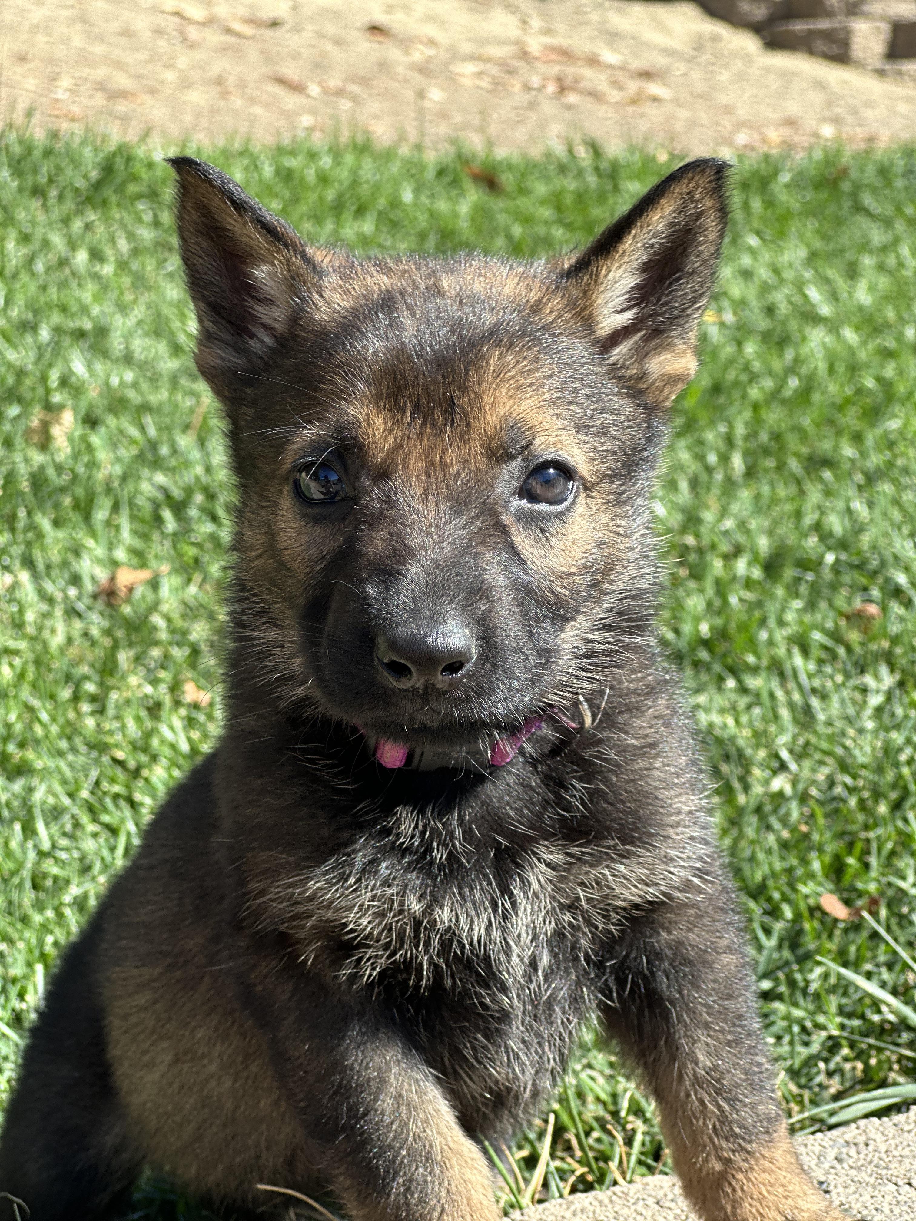 Aura is a female German Shepherd. Carefully selected as a great representative of her breed, Christina decided to make her part of their program. Christina has passed Good Dog’s screening process, which involved a review of their breeding practices, environment, and the mental and physical health of their dogs.