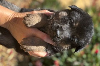 Our German Shepherd puppies include sable, black and tan, and bi-color. Dachshund puppies are wild boar. Colors will vary depending on the parent dogs.