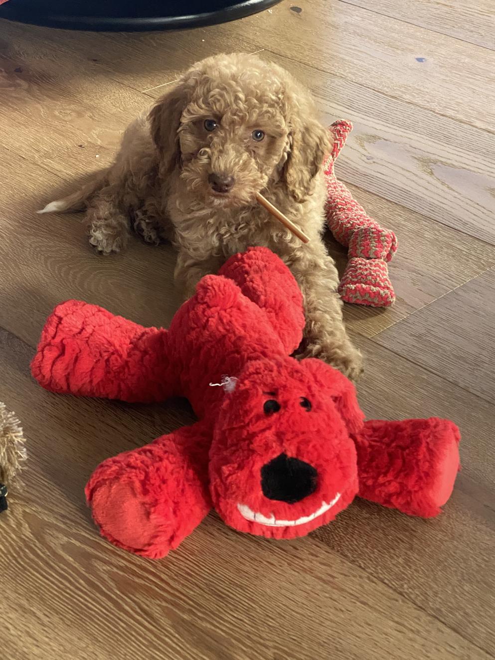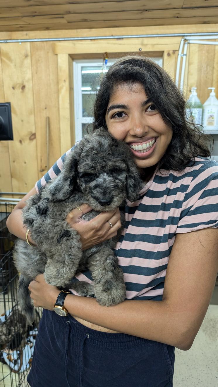 Trainable and friendly, the Double Doodle is a cross between two recognized doodle crossbreeds. This crossbred is known for being very sociable, loving, and family-oriented.