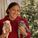 A Fawn Frenchie looks into the camera, there is a pink flower on the collar