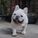A Blue Fawn Frenchie stands outside on a sidewalk