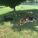 German Shepherd lays in front of a tree