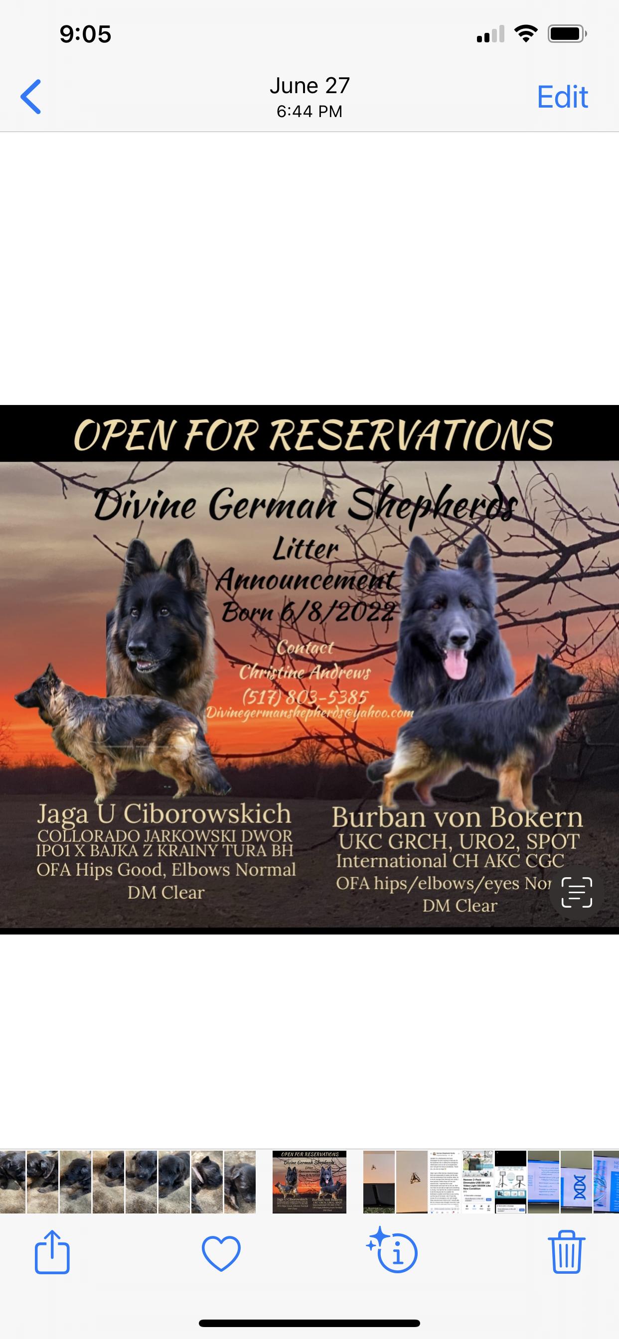 Best experience with a breeder I’ve ever had. Never had a German Shepherd before and she was extremely happy to explain a lot about the breed and making sure...