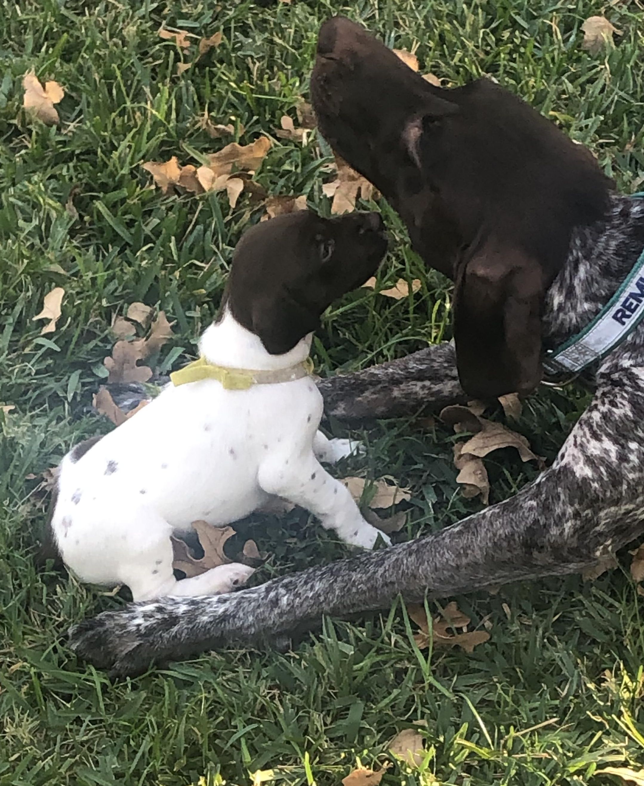 German Shorthaired Pointer puppies in Keller, TX are a moderate shedding breed. We recommend speaking directly with your breeder to get a better idea of the expected shedding level of your German Shorthaired Pointer puppy.