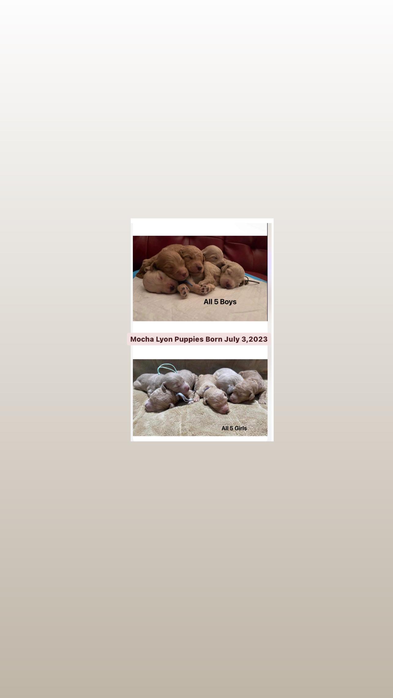 Our experience with Lyon x Luna Goldendoodles was great! Our Louie (previous Apollo red collar male) was born in January of 2024. Jonae was very responsive with...