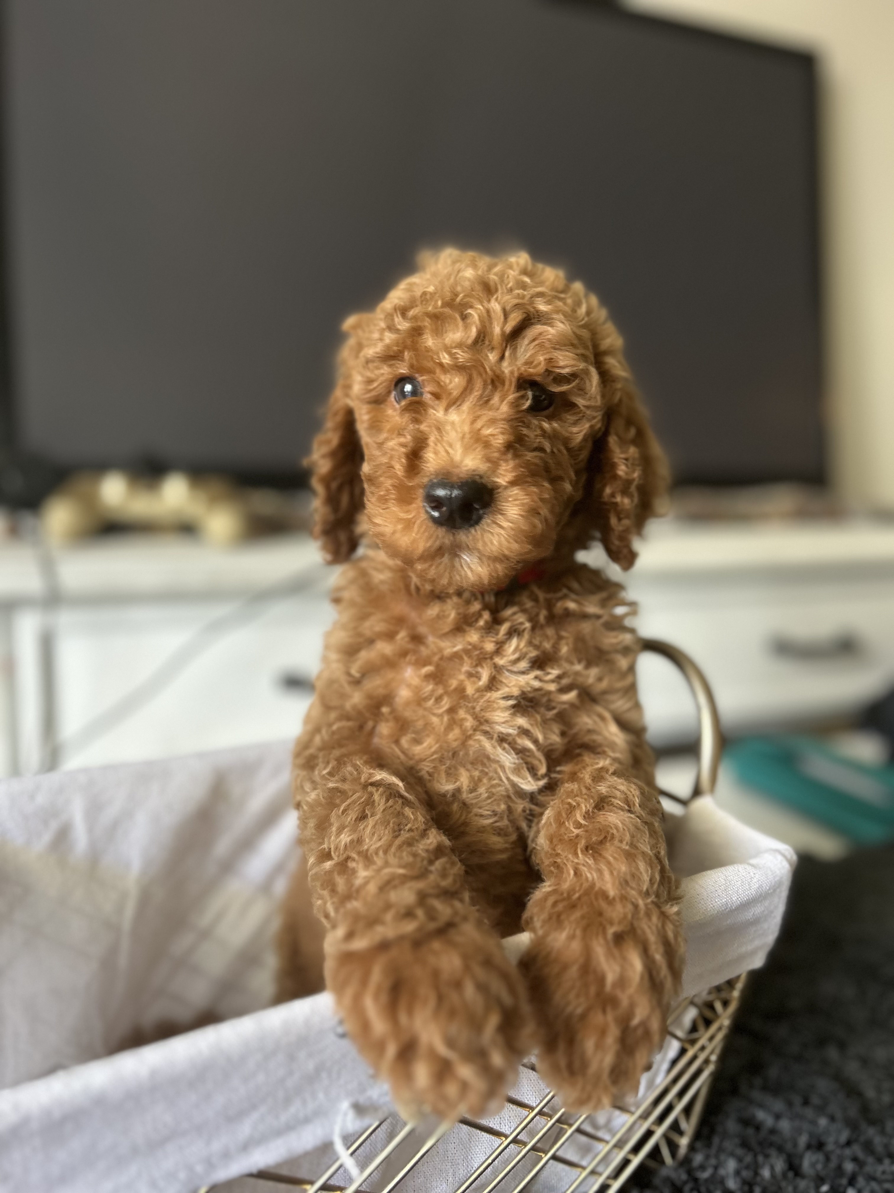 Miniature Goldendoodles are typically around 26 to 35 pounds