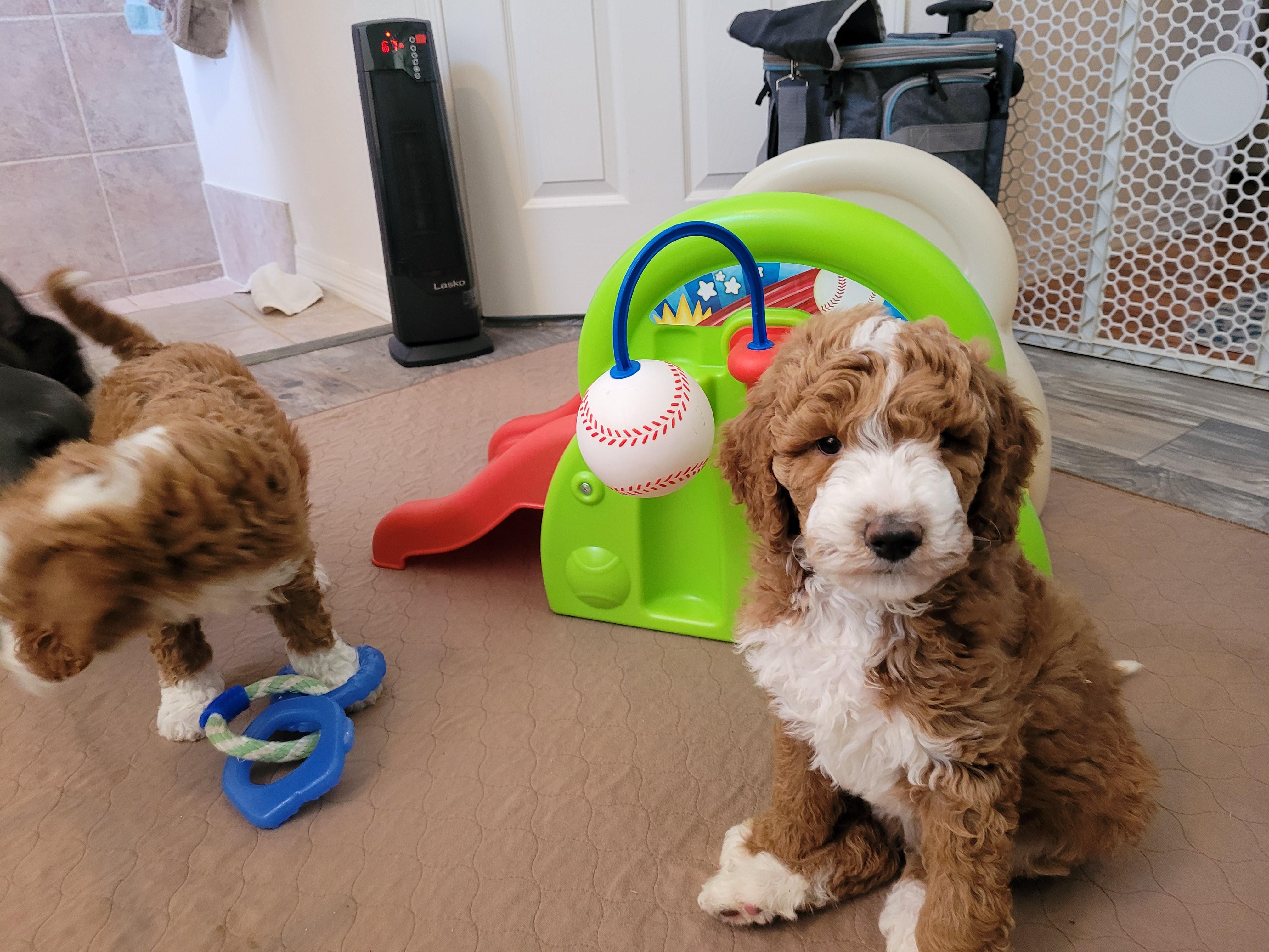 Goldendoodle puppies in Prescott, AZ tend to have moderate energy. Typically, dogs with a moderate energy level may require around 30 to 60 minutes per day of physical activity, though individual dogs may fall outside that range.