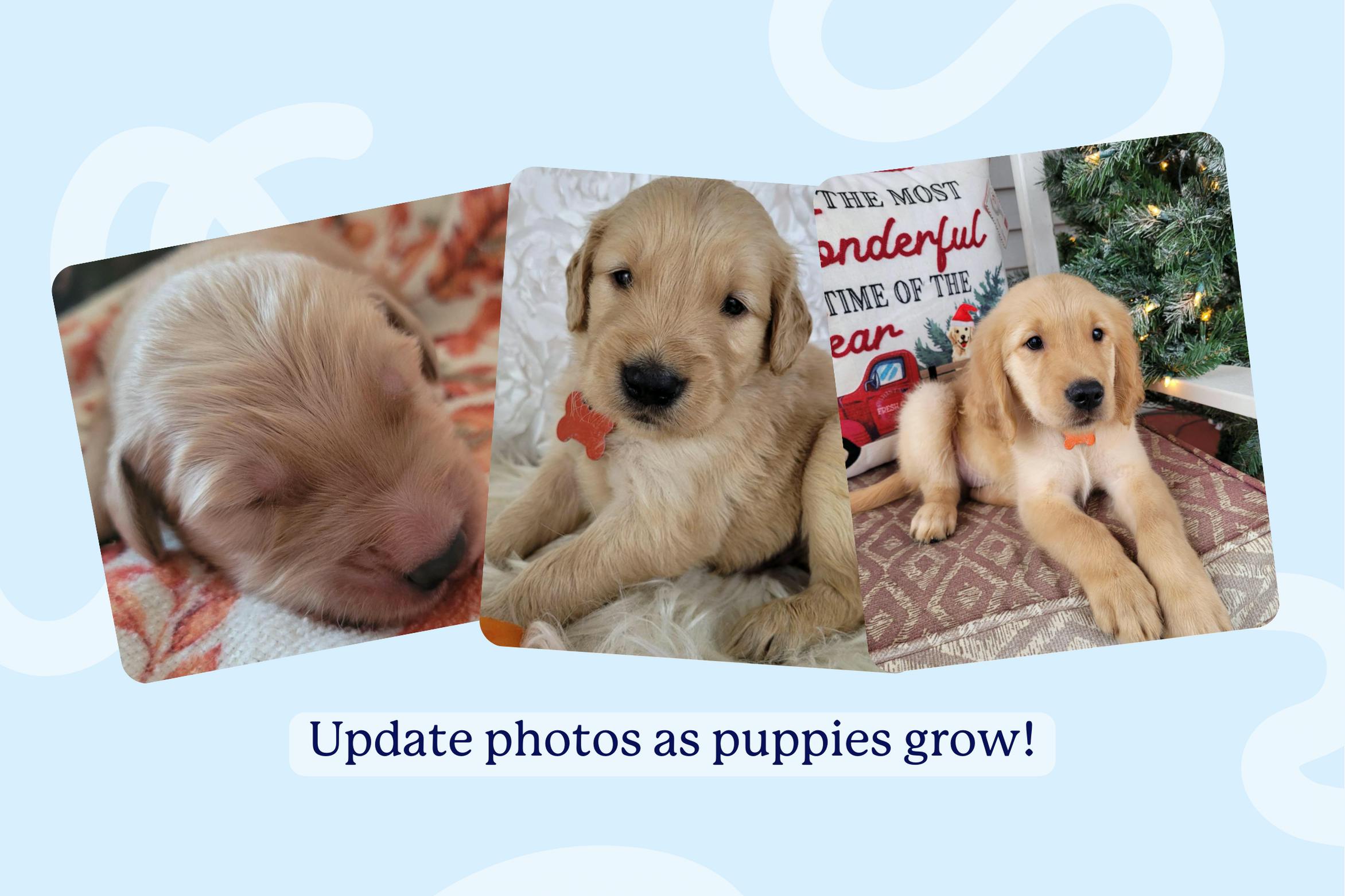 When you’re uploading photos, a good rule of thumb is to add 5+ photos for each pup, and keep them updated each week as puppies grow. Puppies with 5 or more photos are 2x more likely to receive interest from a potential buyer than puppies with only 1 photo. Follow these tips to take great puppy photos.