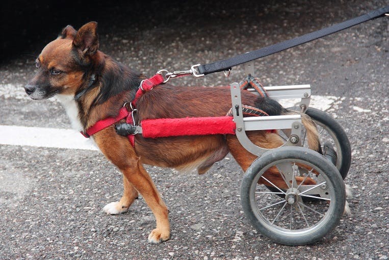 There is no treatment or cure for degenerative myelopathy, so management revolves around supportive care, such as physical therapy and obesity prevention. Environmental management such as anti-skid mats and a wheelchair or cart can help dogs continue to stay mobile. Dogs with DM may also need help with bladder expression and maintenance of clean bedding to prevent urine scalding and urinary tract infections.