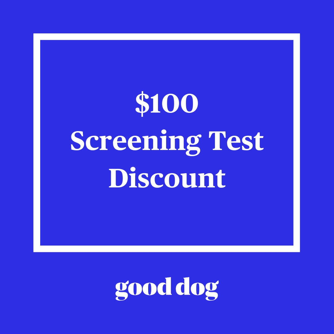 Take advantage of $10 off any screening test (including x-rays, thyroid panel, cardiac or eye exams, patella exams, BAER testing, thyroid testing, holter monitors and OFA registration)! You can apply this discount up to 10 times per calendar year ($100 total annually). In order to redeem this discount, fill out this form and send your receipt to breederbenefits@gooddog.com! This is separate from and in addition to our discounts on genetic testing.