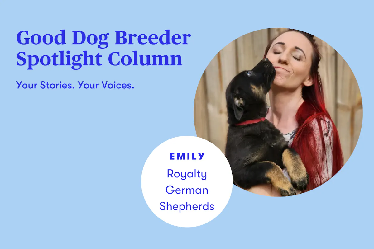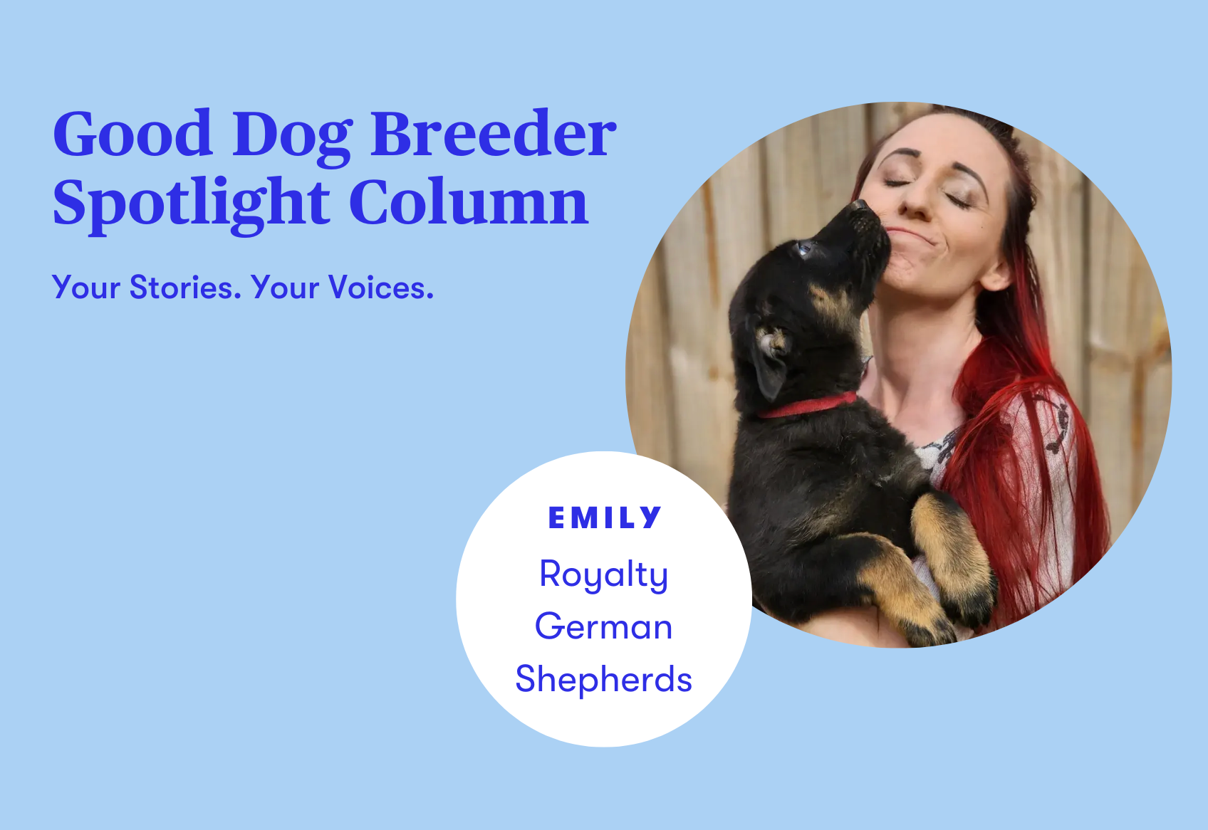 We’re so excited to introduce you to this month’s Good Breeder columnist, Emily Thornhill of Royalty German Shepherds