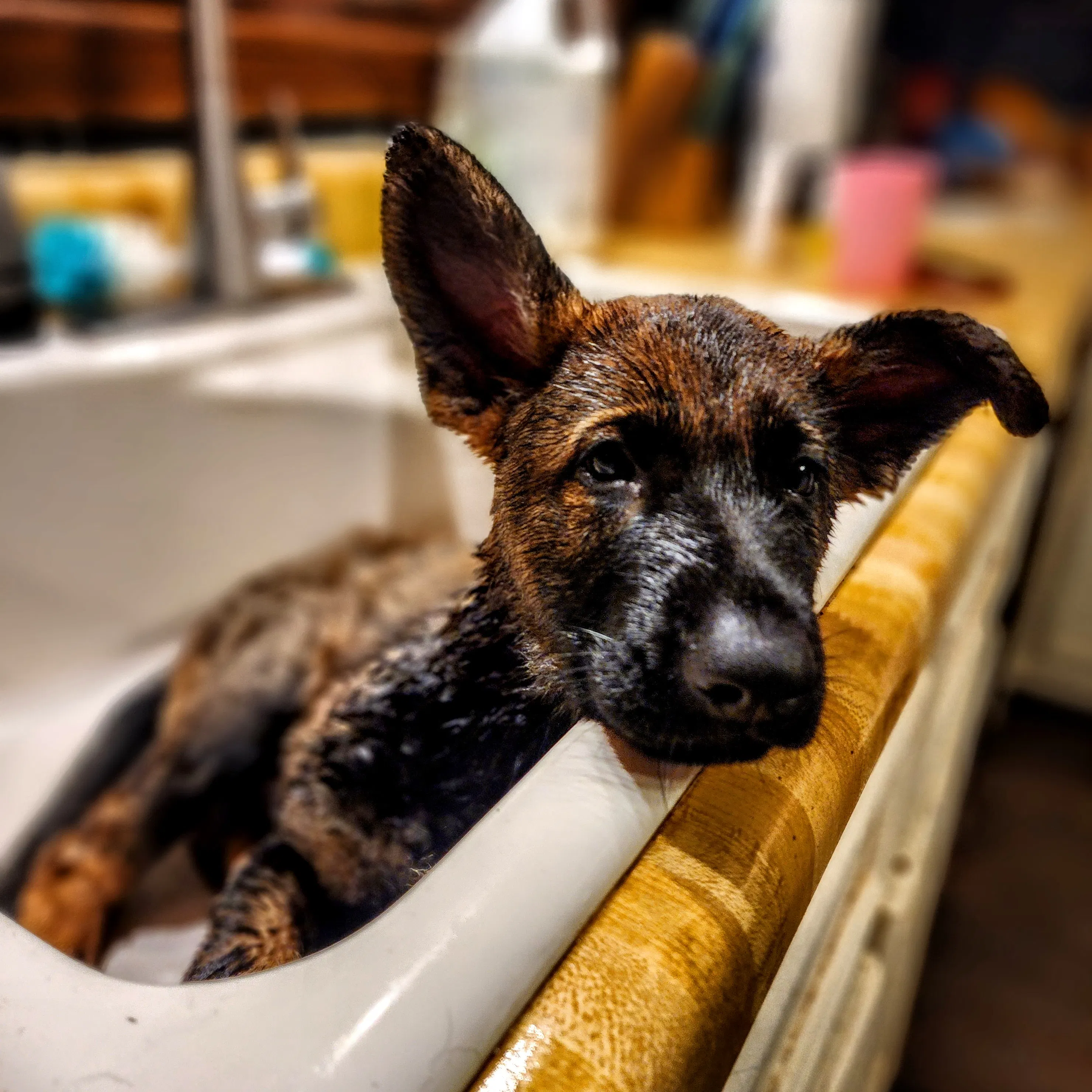 ET: Given my background in both the veterinary and dog training world, I have seen just how detrimental unethical breeding and lack of knowledge can be. I made it a goal of mine to produce healthy and sound dogs for everyone, including active families who are looking for an intelligent, confident, protective, and sociable family member. It's also important to me to educate potential families and other Shepherd owners on health, training, and breeding standards.