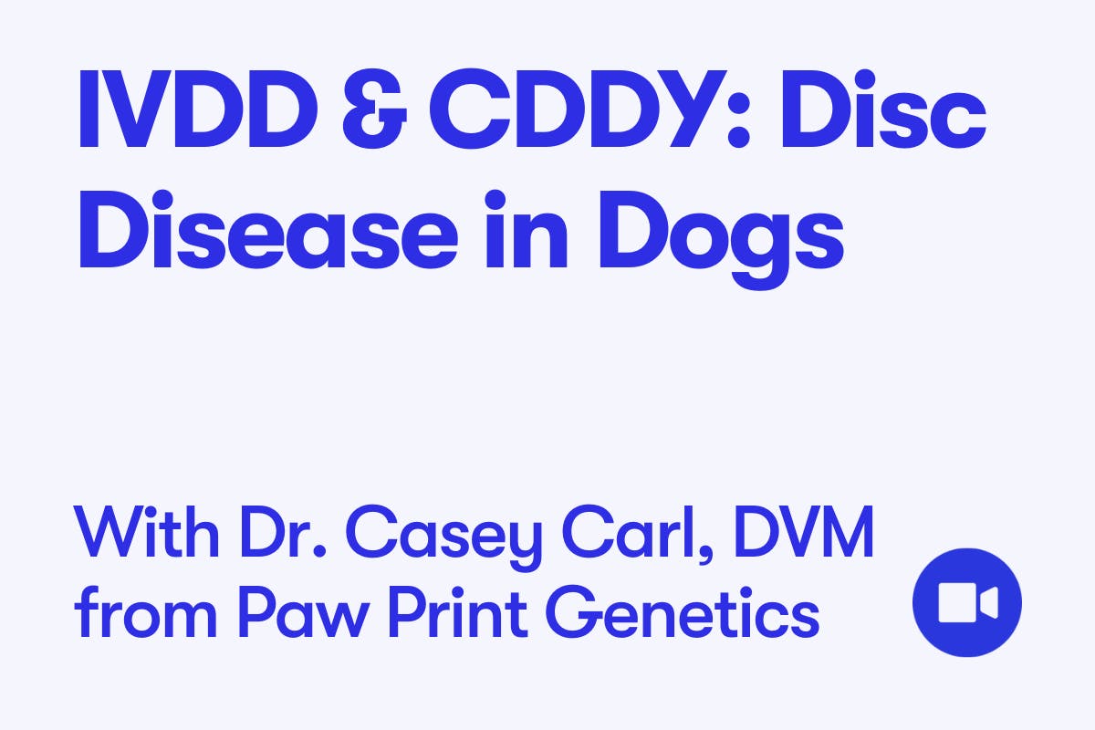 Watch Dr. Casey Carl, DVM, the Associate Medical Director at Paw Print Genetics, discuss IVDD & CDDY as well as answer your questions about disc disease in dogs!