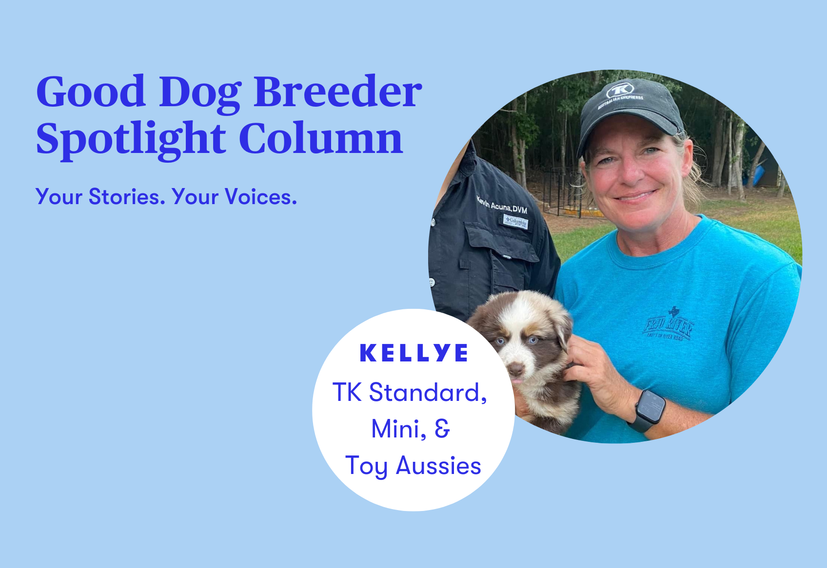 We’re so excited to introduce you to this month’s Good Breeder columnist, Kellye Marshall of TK Standard, Mini, & Toy Aussies