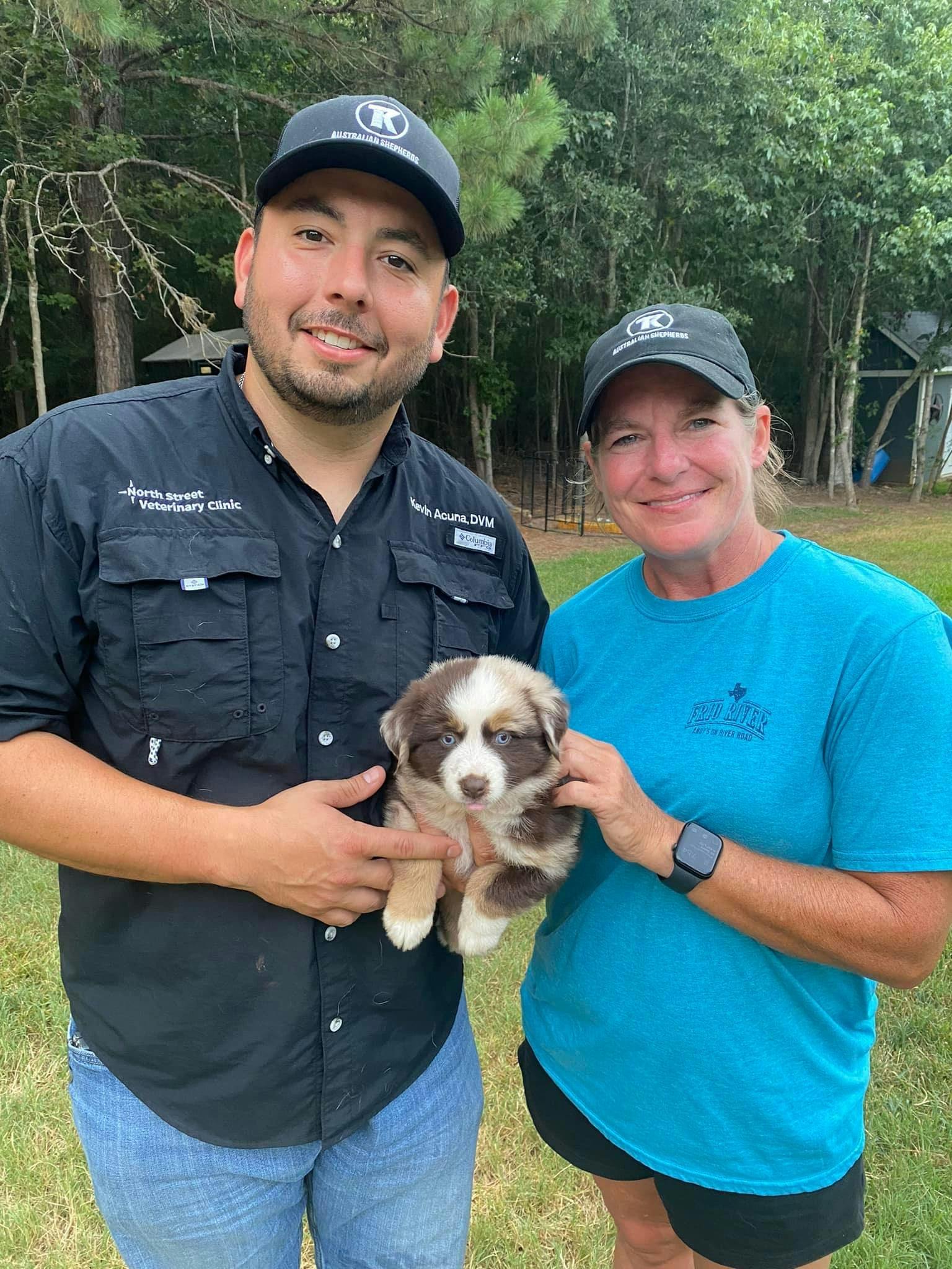Located in the heart of Nacogdoches, Texas, our family-owned business, TK Standard, Mini, & Toy Aussies, is dedicated to raising healthy, high-quality Australian Shepherds with love and integrity. My husband and I have been married for 30 years, and alongside our two daughters, we specialize in AKC Standard Australian Shepherds, AKC Mini American Shepherds, and ASDR Standard, Mini, and Toy Aussies. We’re committed to producing puppies that thrive in various roles—whether they’re in the show ring, working, or bringing joy as cherished family pets.